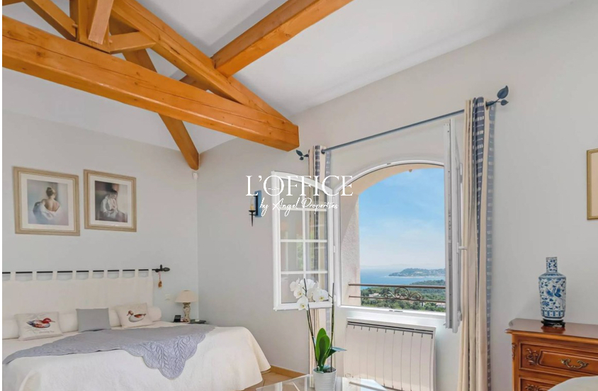 The main level also features several bedrooms with sea views, harmoniously distributed throughout. Upstairs, the master suite has a private bathroom and a terrace offering exceptional panoramic views.