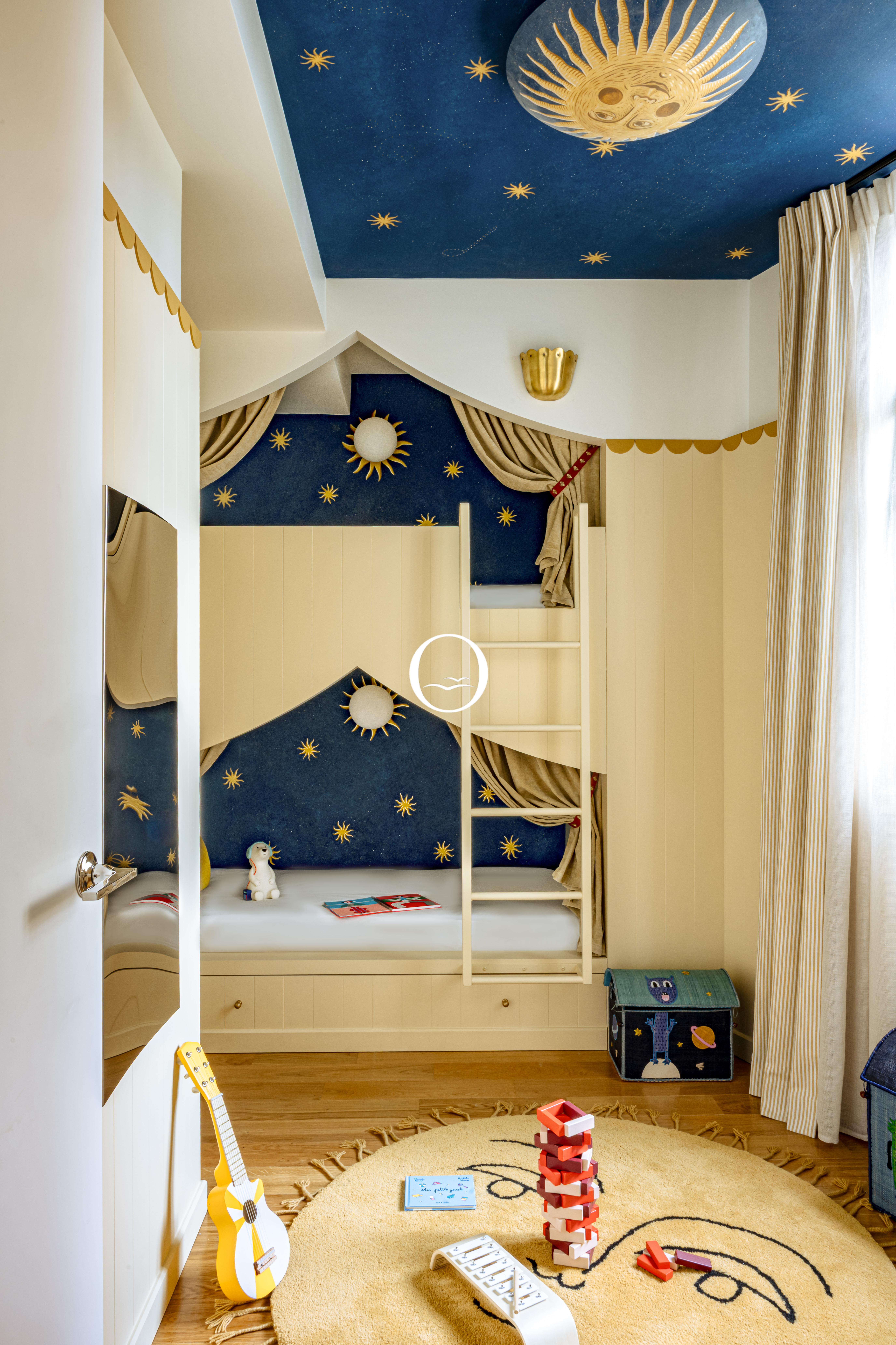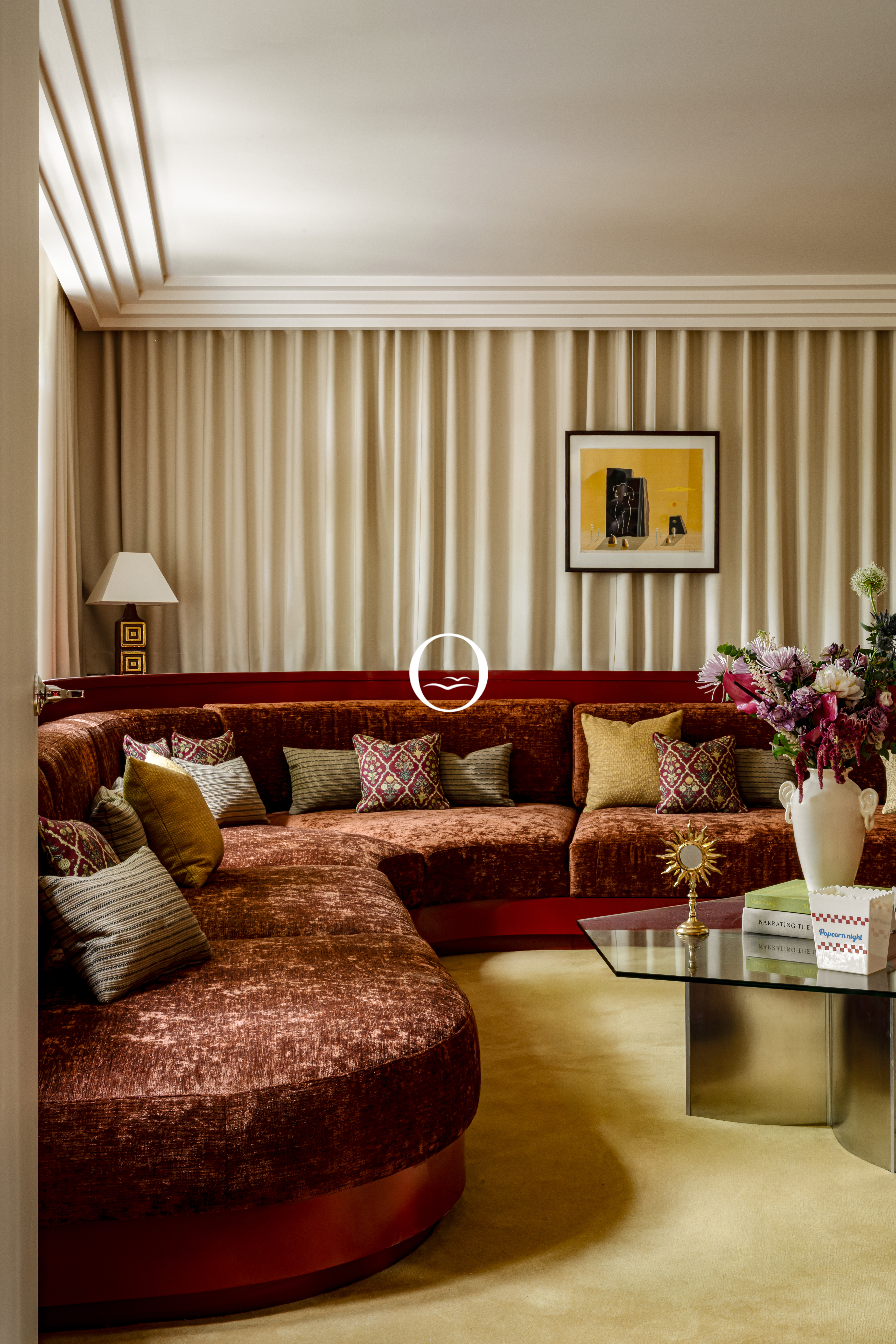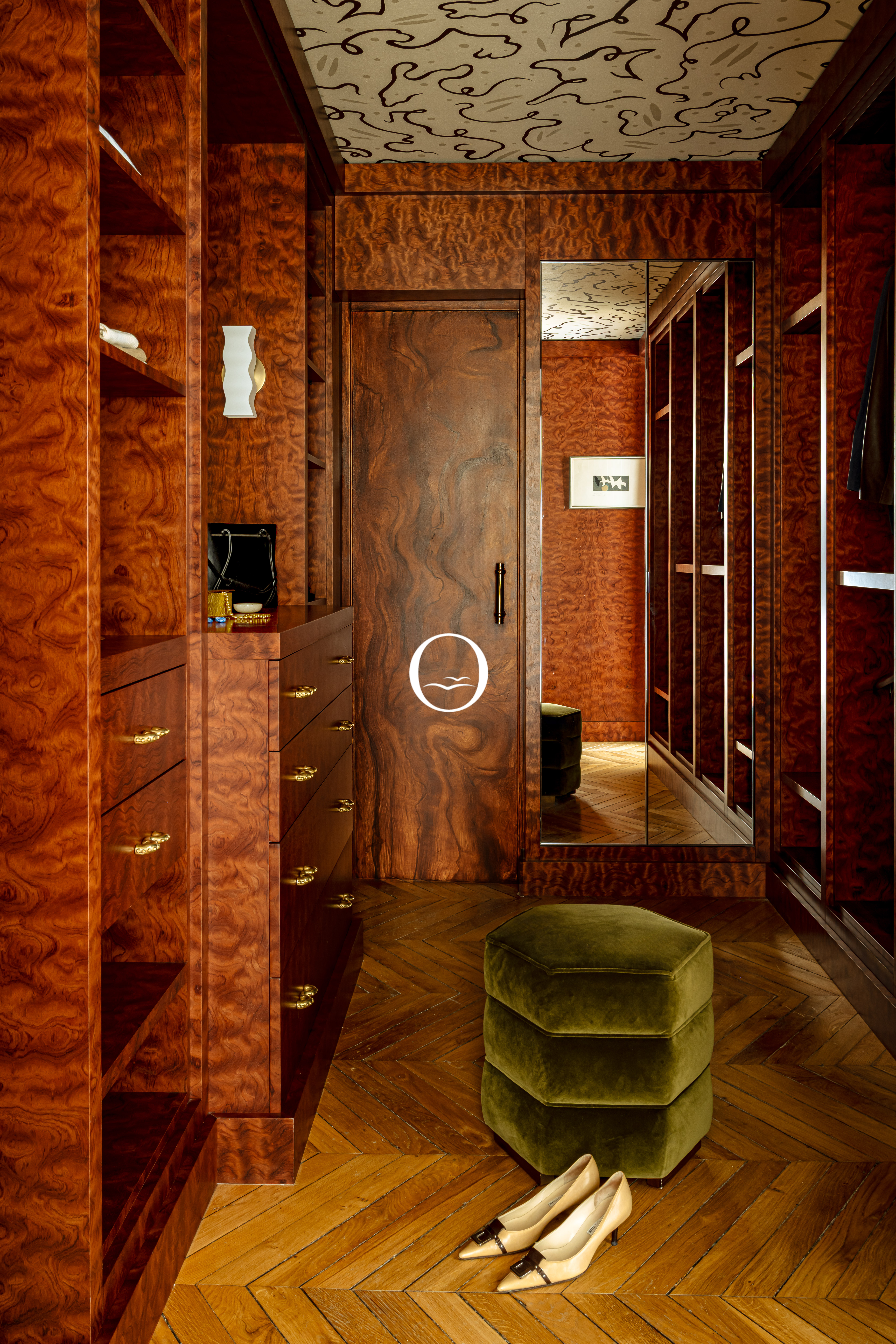 The style blends Art Deco and contemporary design.