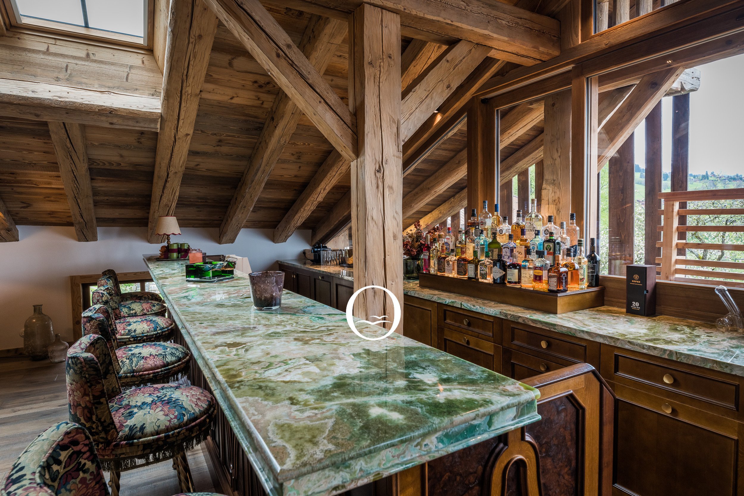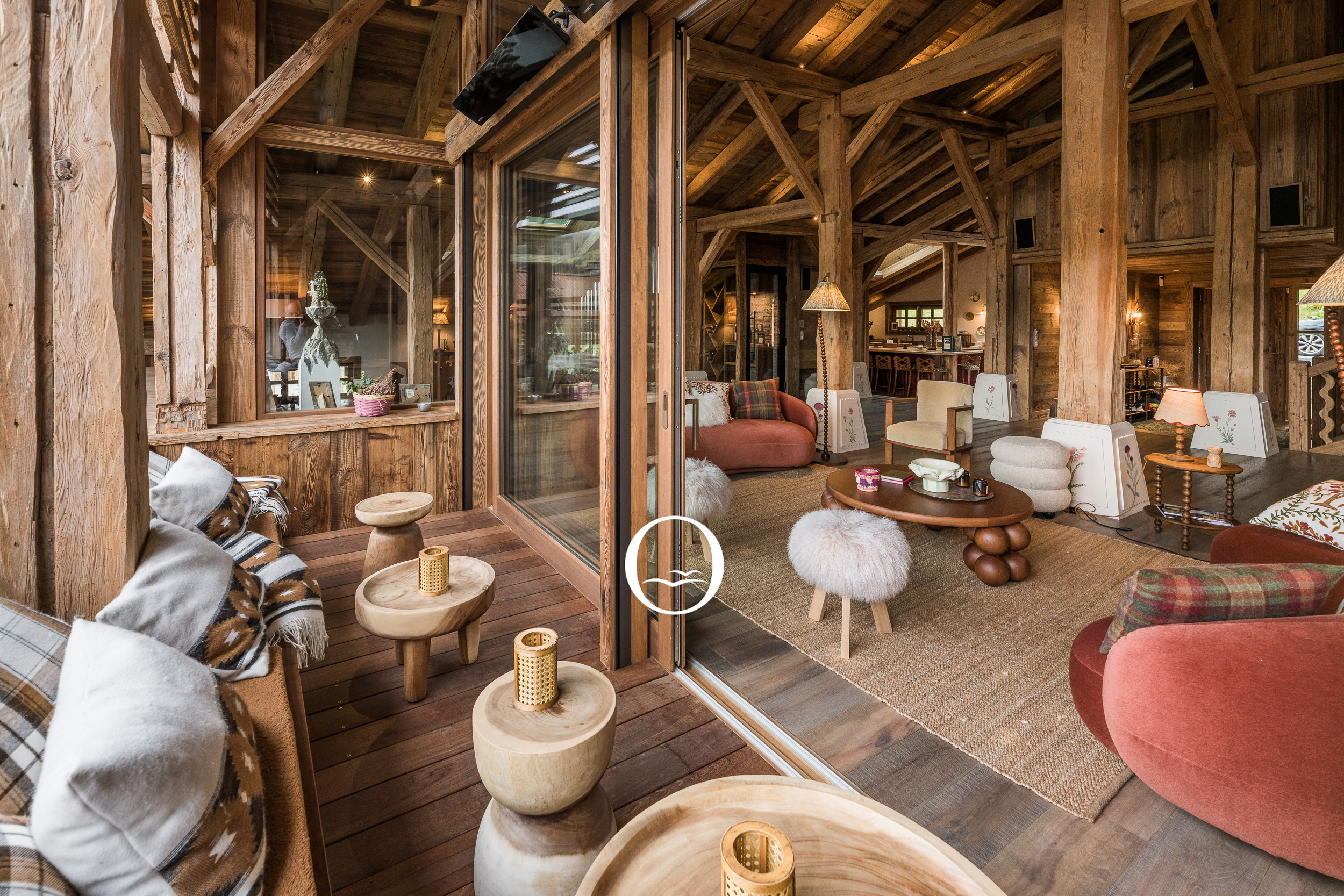 Le design intérieur de la ferme marie habilement des matières nobles telles que le marbre, le velours de mohair et le bronze. Les lignes courbes du mobilier apportent une touche d’élégance et de douceur, créant une atmosphère chaleureuse et intemporelle. Chaque détail a été pensé pour refléter l'authenticité du lieu tout en intégrant des éléments contemporains.
