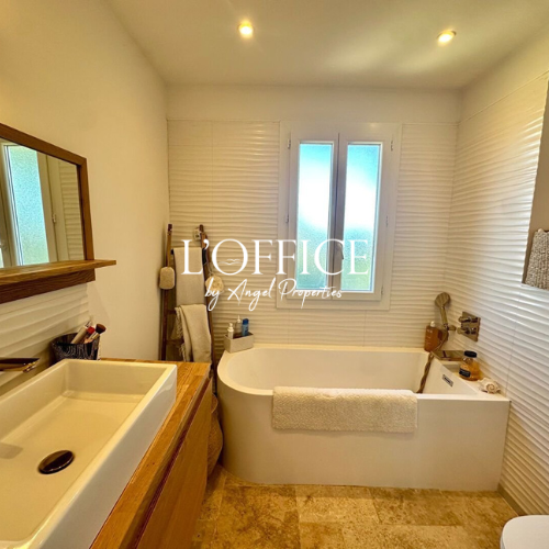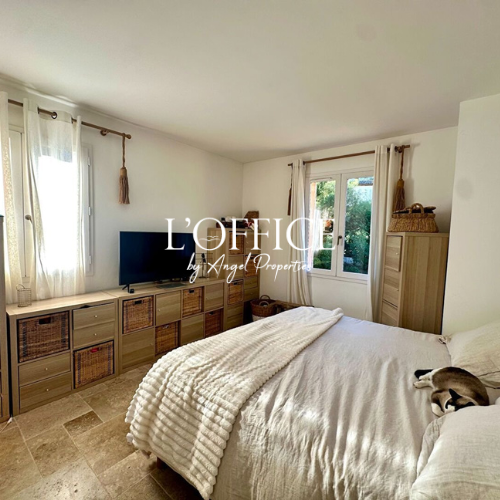 uverte ainsi qu’une piscine privée, idéale pour profiter du climat méditerranéen en toute intimité. L’étage accueille 4 chambres, dont une suite parentale avec salle de bains, et une salle d’eau supplémentaire.