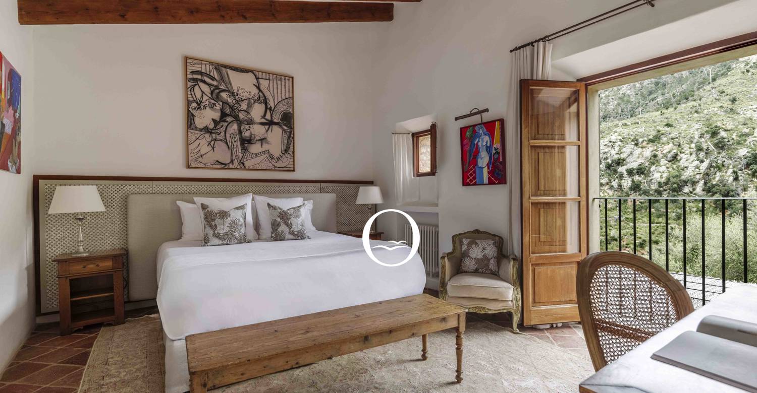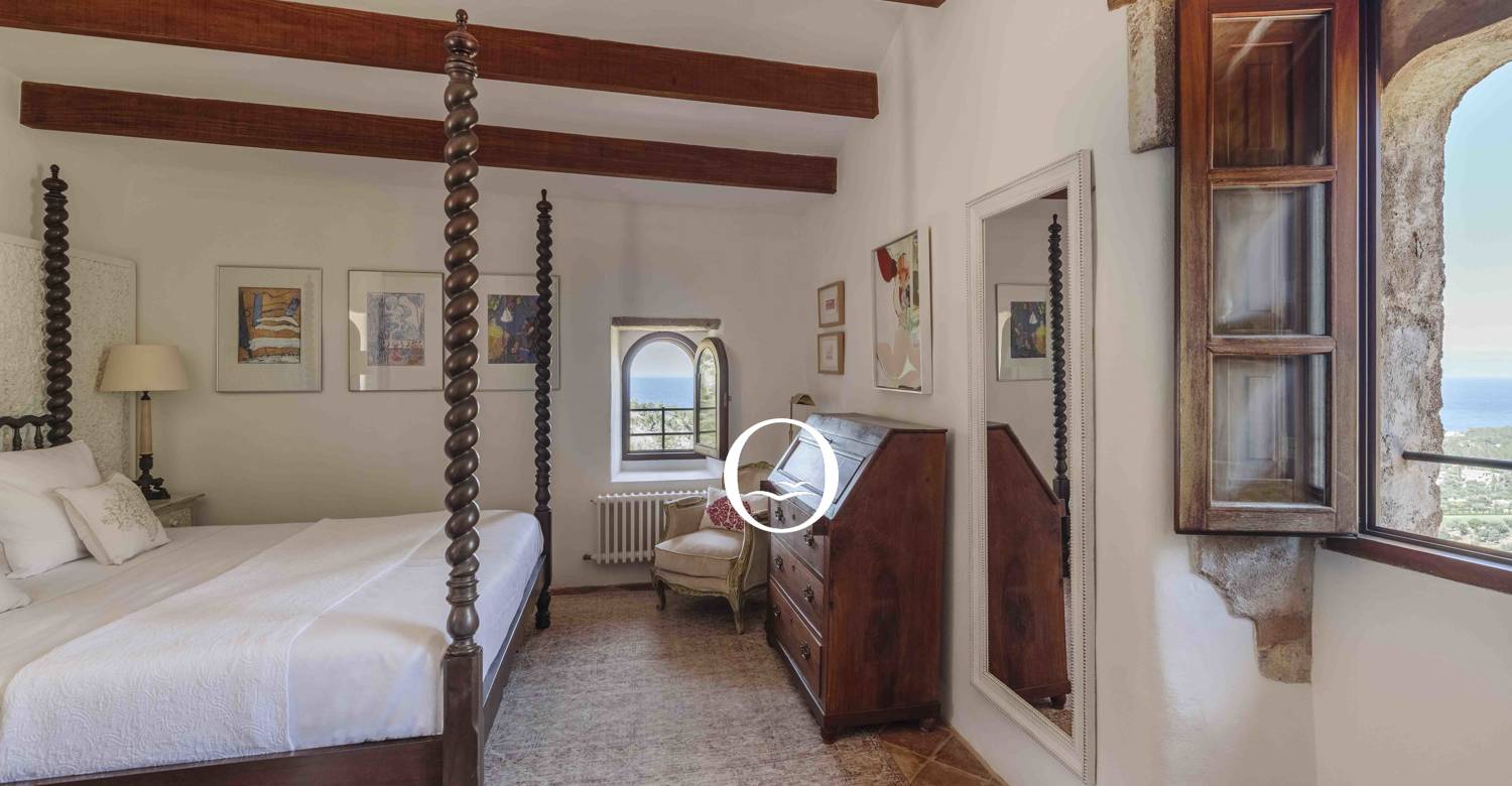 Les chambres sont réparties sur trois étages et offrent toutes des vues spectaculaires sur le paysage majorquin. Une chambre se trouve dans la tourelle signature de la villa, avec une cage d'escalier incurvée menant à une salle de bain luxueuse au niveau inférieur. Dispose d'un salon et d'une salle à manger interconnectés, un endroit idéal pour se réunir pour le petit déjeuner et planifier votre journée. La cour centrale abritée est un espace idéal pour se détendre avec un bon livre. Il y ... voir plus