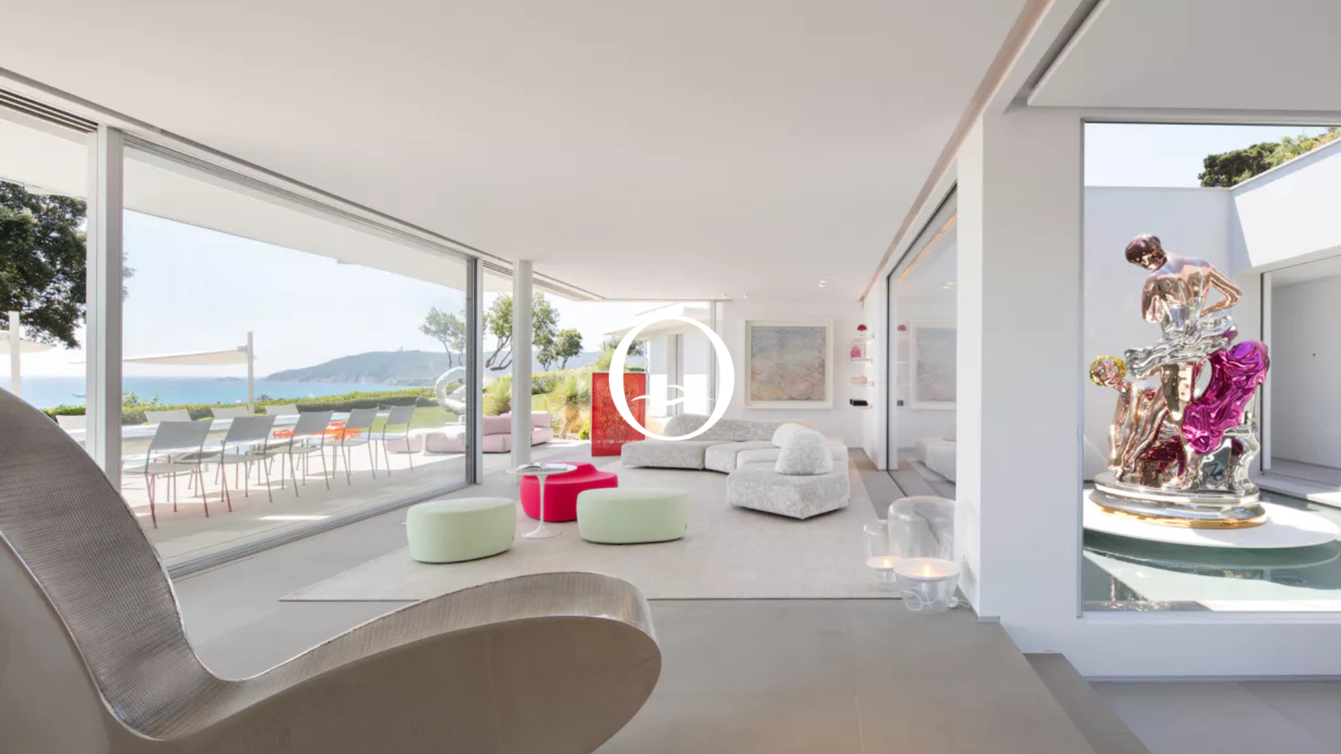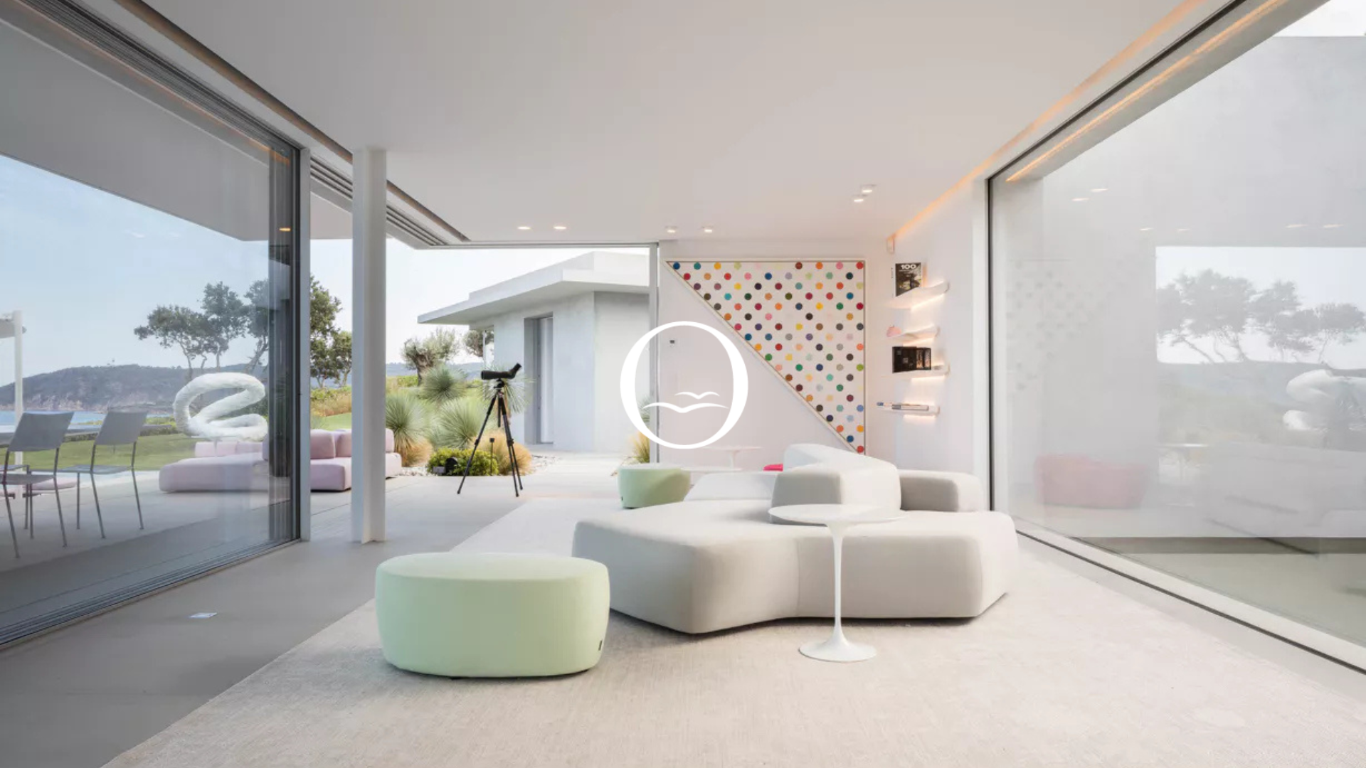 Ses intérieurs lumineux, ouverts par de larges baies vitrées, mettent en valeur un mobilier design et des touches colorées qui soulignent une atmosphère moderne et raffinée.