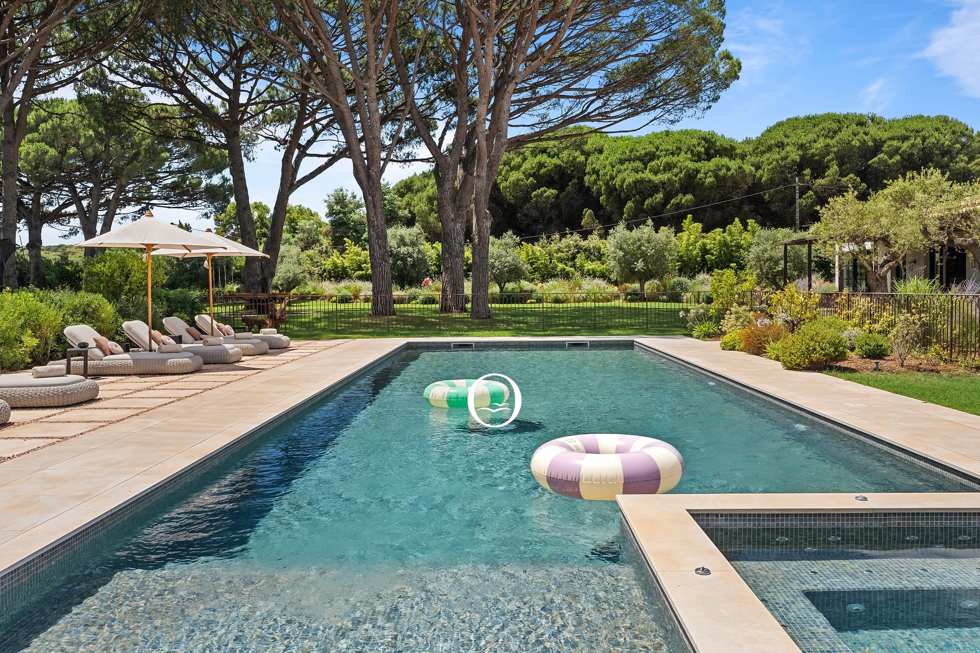 Offrez-vous une sérénité absolue dans la somptueuse Villa des moulins, idéalement située à seulement cinq minutes à pied de la célèbre plage animée de Pampelonne. Nichée au cœur d’une nature luxuriante, cette villa d’exception a été minutieusement conçue pour incarner l’évasion ultime, alliant confort, luxe et tranquillité.