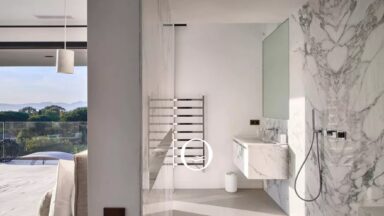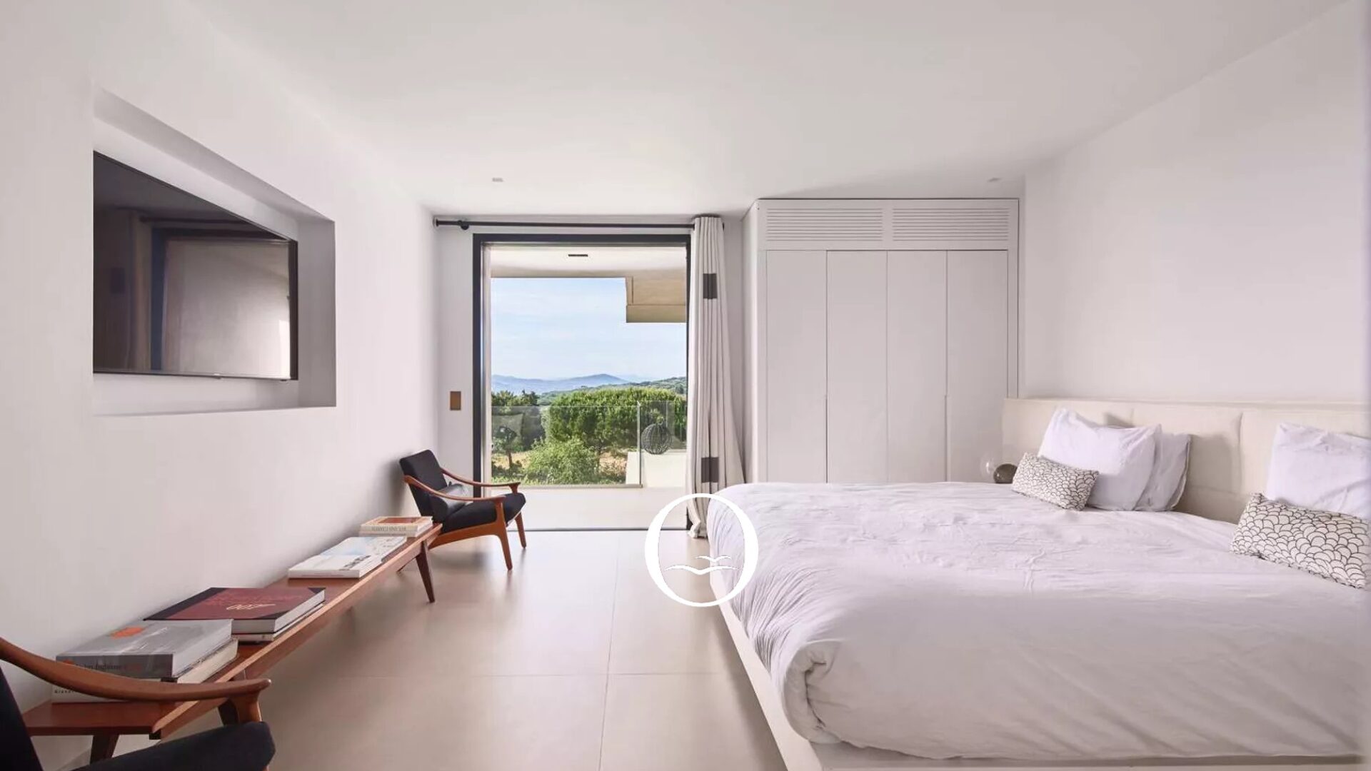 Cette propriété contemporaine, achevée en 2017. Nichée dans un secteur calme, elle surplombe la baie des Cannoubiers et les vignes environnantes, offrant une vue mer depuis le premier étage. À seulement cinq minutes en voiture du Port et de la Place des Lices, elle bénéficie d’un accès facile aux plages renommées.