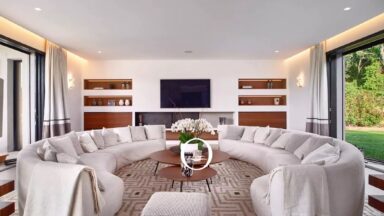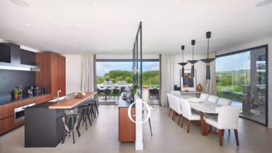 Le terrain plat de 2200 m² est magnifiquement paysagé, avec une grande piscine et une terrasse en bois, créant un environnement paisible et idéal pour se détendre. Répartie sur deux niveaux, la maison comprend un rez-de-chaussée avec un salon spacieux et lumineux grâce à de grandes baies vitrées, une cuisine américaine équipée, une salle à manger élégante, et plusieurs chambres d’hôtes avec salles de bains attenantes. Le premier étage abrite la suite parentale avec terrasse privée et vue mer, un dressing et une salle de bains luxueuse, ainsi que d’autres chambres confortables.