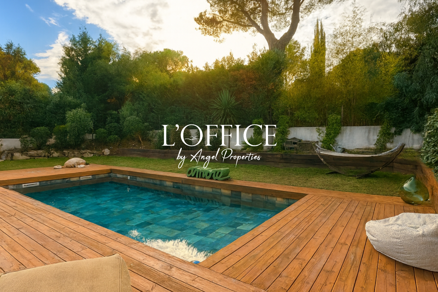 À l’extérieur, de belles terrasses aménagées, une piscine au cœur d’un jardin luxuriant sans vis-à-vis et des espaces détente invitent à profiter pleinement du climat méditerranéen. La propriété bénéficie également d’un parking privé.