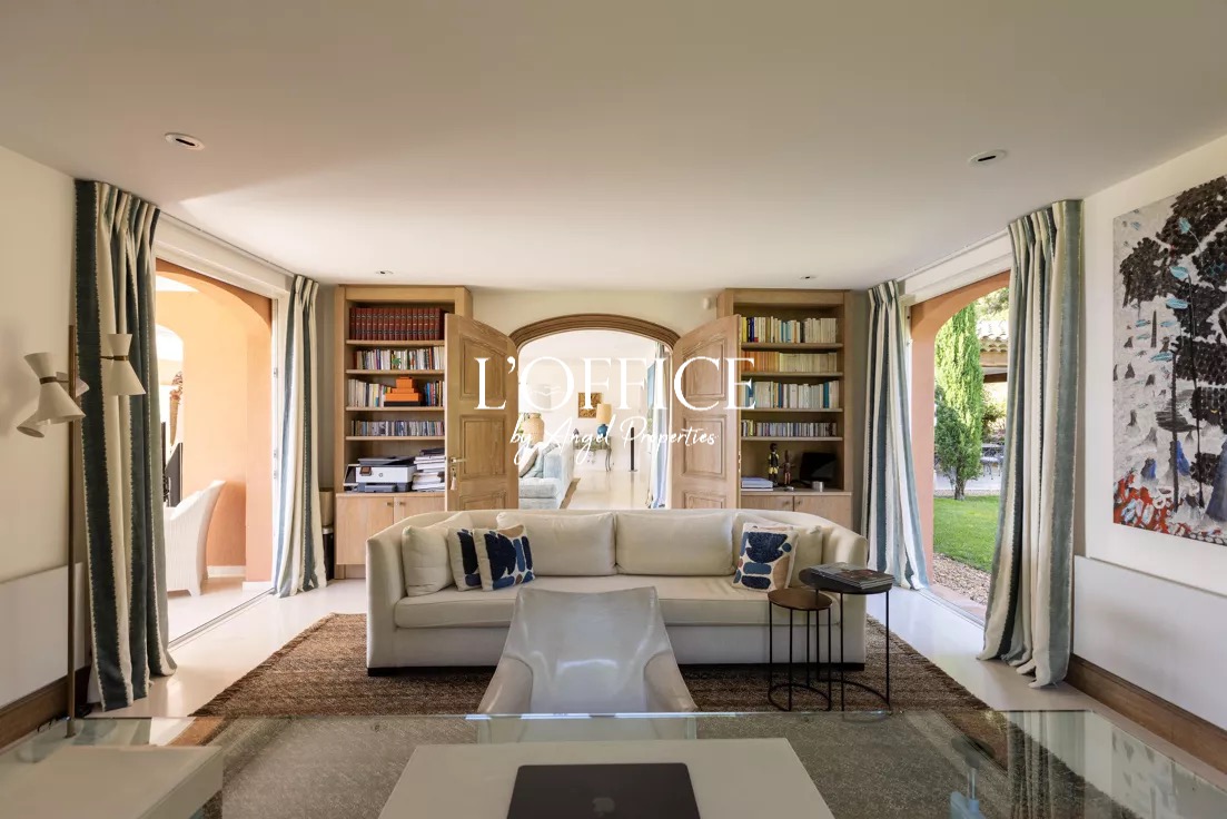 Les espaces de vie sont spacieux et chaleureux, avec plusieurs salons ouverts sur les terrasses et les jardins paysagers. La cuisine moderne, entièrement équipée, est idéale pour recevoir et partager des moments conviviaux.